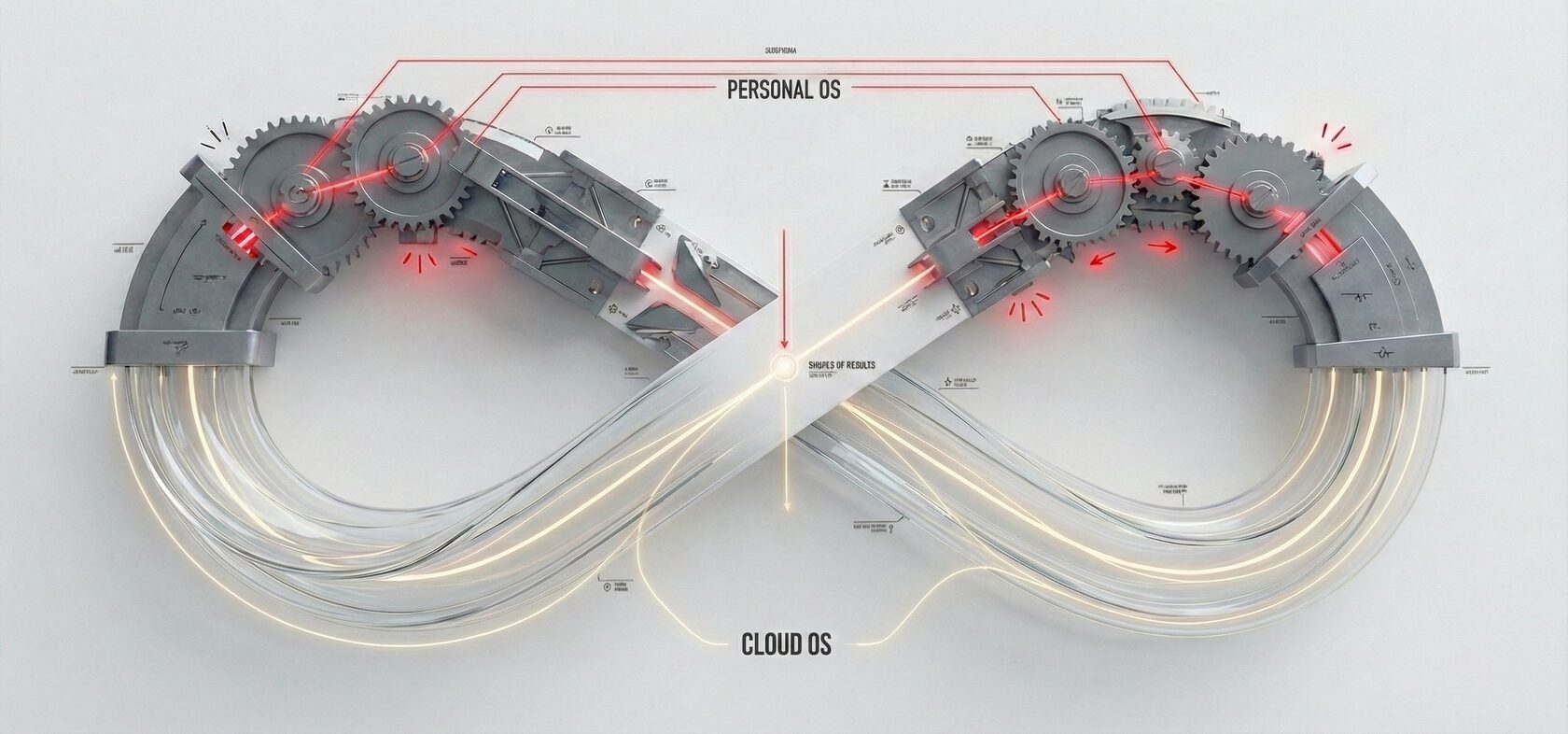 Метафора облачной ОС именно про это. Представь, что у Personal OS есть облачный репозиторий, где хранится исходная версия без глюков и багов: одна чистая ОС, готовая к обновлению. Казалось бы, это должно давать радость и надежду. Но на практике именно здесь включается firewall. Потому что синхронизация угрожает не привычкам, а вымышленному образу себя.